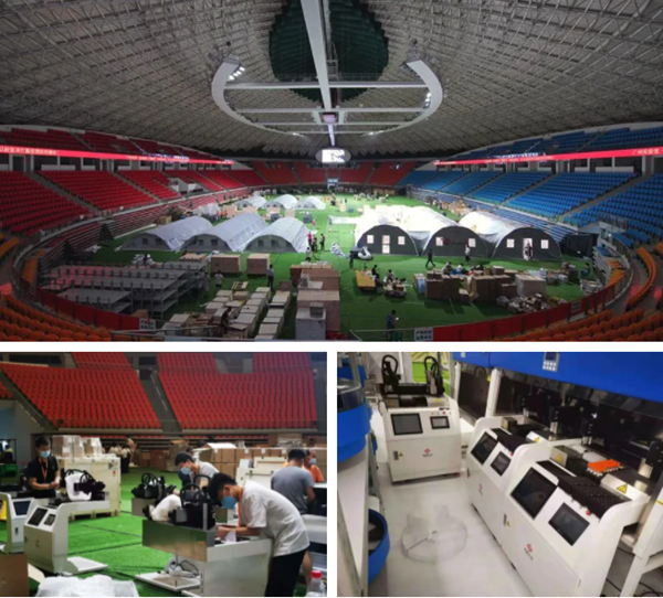 在主战场广州,圣湘生物工程师们全力以赴参与到广州市政府统一协调各单位搭建的气膜方舱实验室工作中。6月1日,广东首个气膜方舱实验室在广州体育馆正式投入使用;6月2日晚,4个气膜方舱实验室全面投入使用,核酸检测日产能达到12万管,可实现全天候收样检测,提高核酸检测效率。